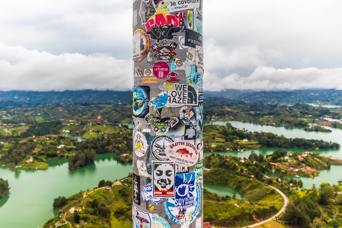 Guatape, um passeio de bate-volta de um dia inteiro, obrigatório pra quem visita Medellín, uma cidade toda colorida, e onde fica a famosa La Piedra, também chamada de El Peñol, onde você tem uma visão de toda a área em volta, que tem uma represa artificial, a entrega para subir são COP $18.000.