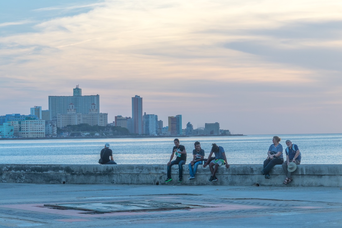 Malecón, o melhor lugar pra passar o final de tarde, é a área do calçadão do lado do mar, que percorre todo o bairro de Habana Vieja, lá não é um ponto de banho, é só pra recostar no muro de boas, conversando, ver o pôr do sol, o que faz as pessoas locais.